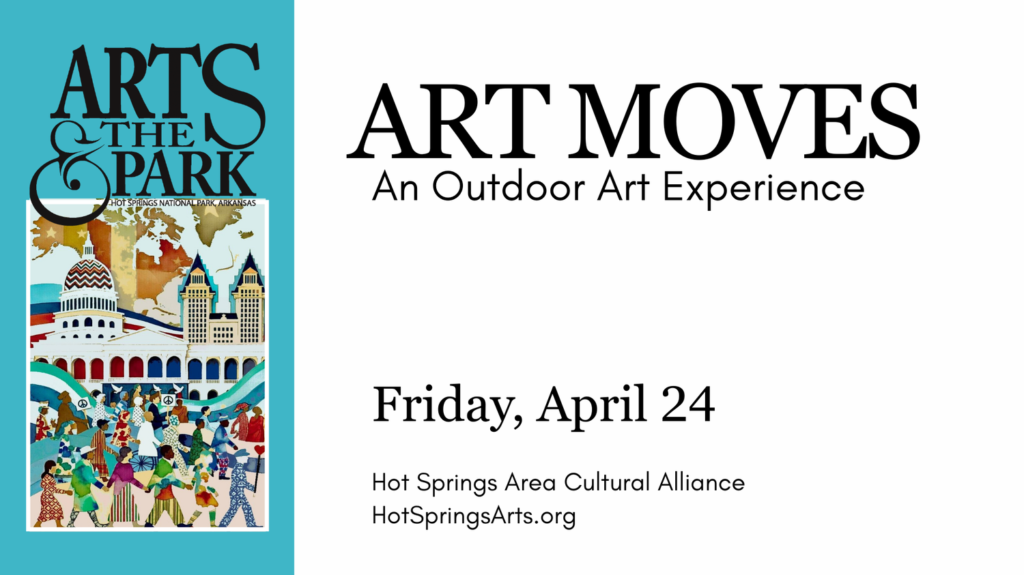 outdoor exhibition of paintings, drawings, and/or photographs reproduced onto metal panels to be displayed along the Hot Springs Creek Greenway Trail as part of the Art Moves outdoor art exhibition. The opening of Art Moves marks the beginning of Hot Springs’ Arts & The Park 10-day arts festival, and the exhibition remains on
