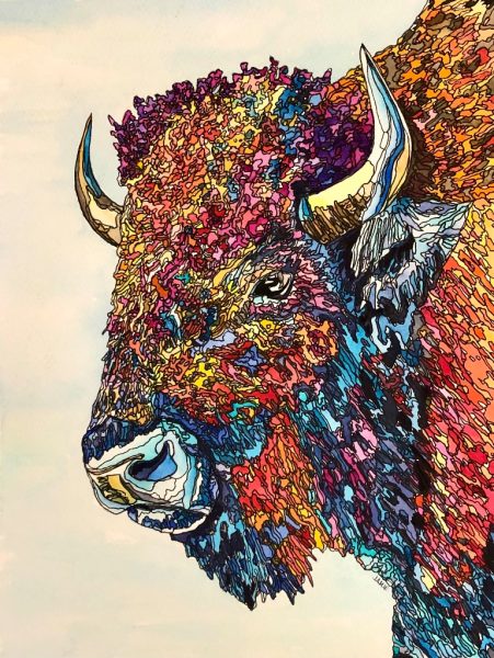 The Bison is a symbol of American and Native American culture and perseverance. It is important as artist for us to help conserve our natural resources.