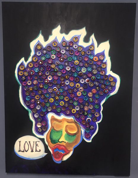 Medium: Acrylic and bottlecaps on canvas  Size: 30×40